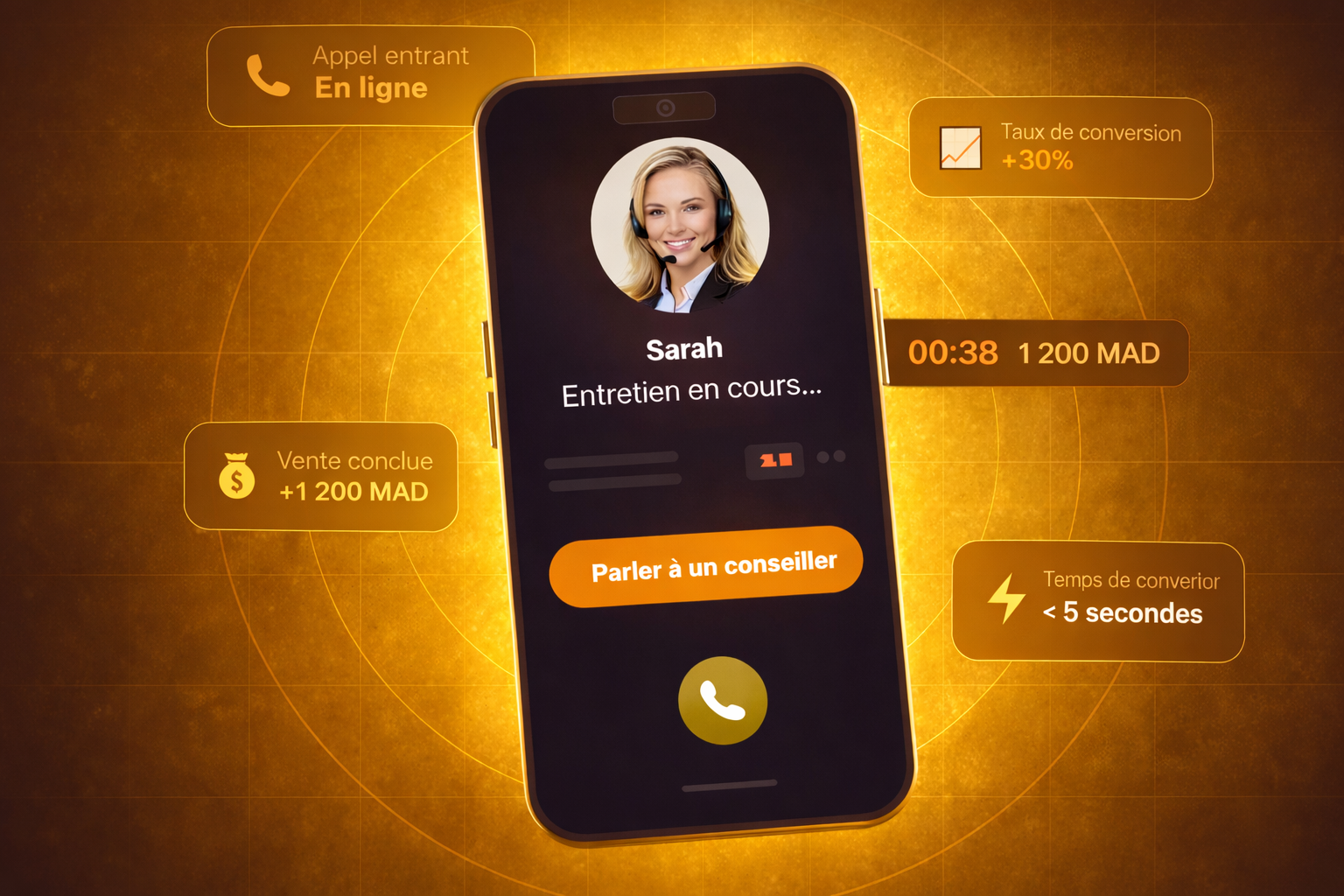 Un bouton d’appel instantané qui connecte vos visiteurs hésitants à votre équipe en temps réel sans application, sans friction.